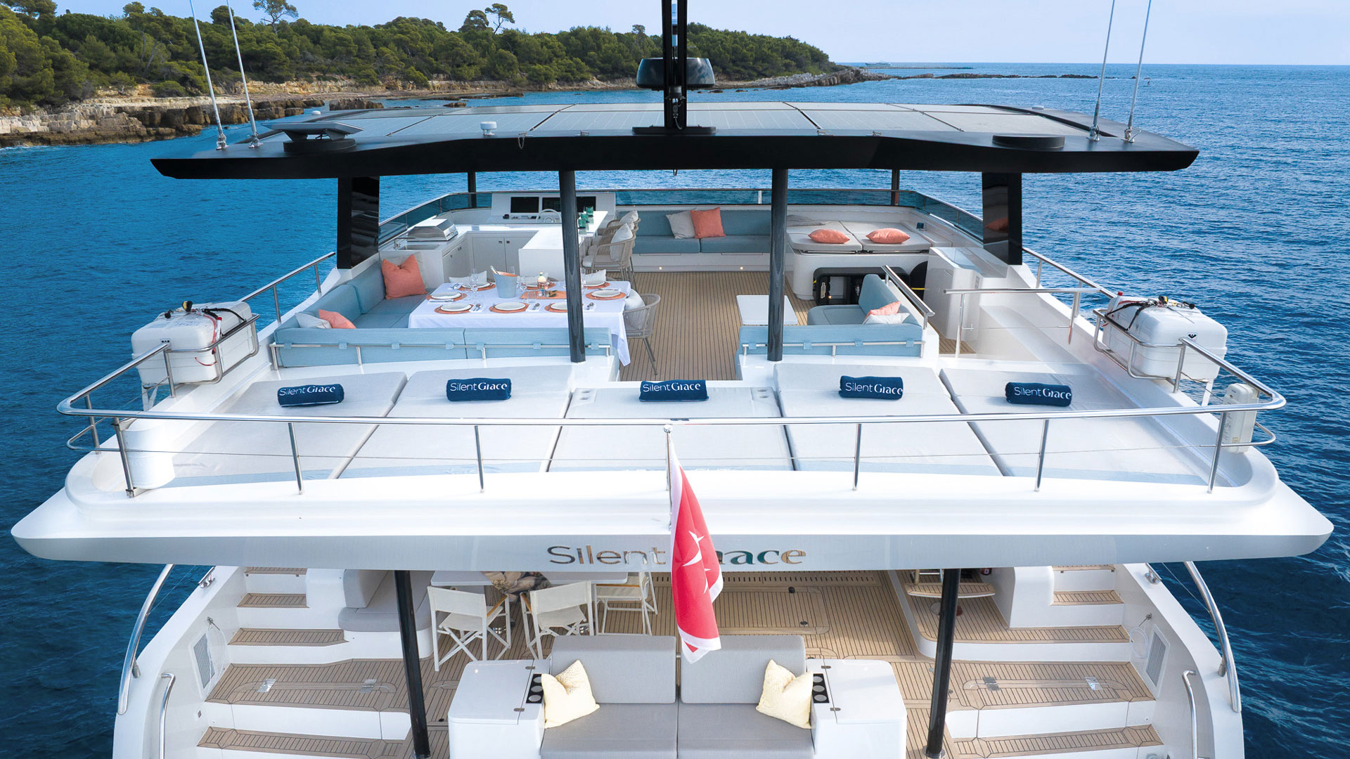 Feel the warmth of the sun, the whisper of the wind and the tranquil sounds of the sea. Silent Grace invites you to experience the Mediterranean like never before aboard a 62-foot, solar-powered catamaran with zero emissions and noiseless cruising.